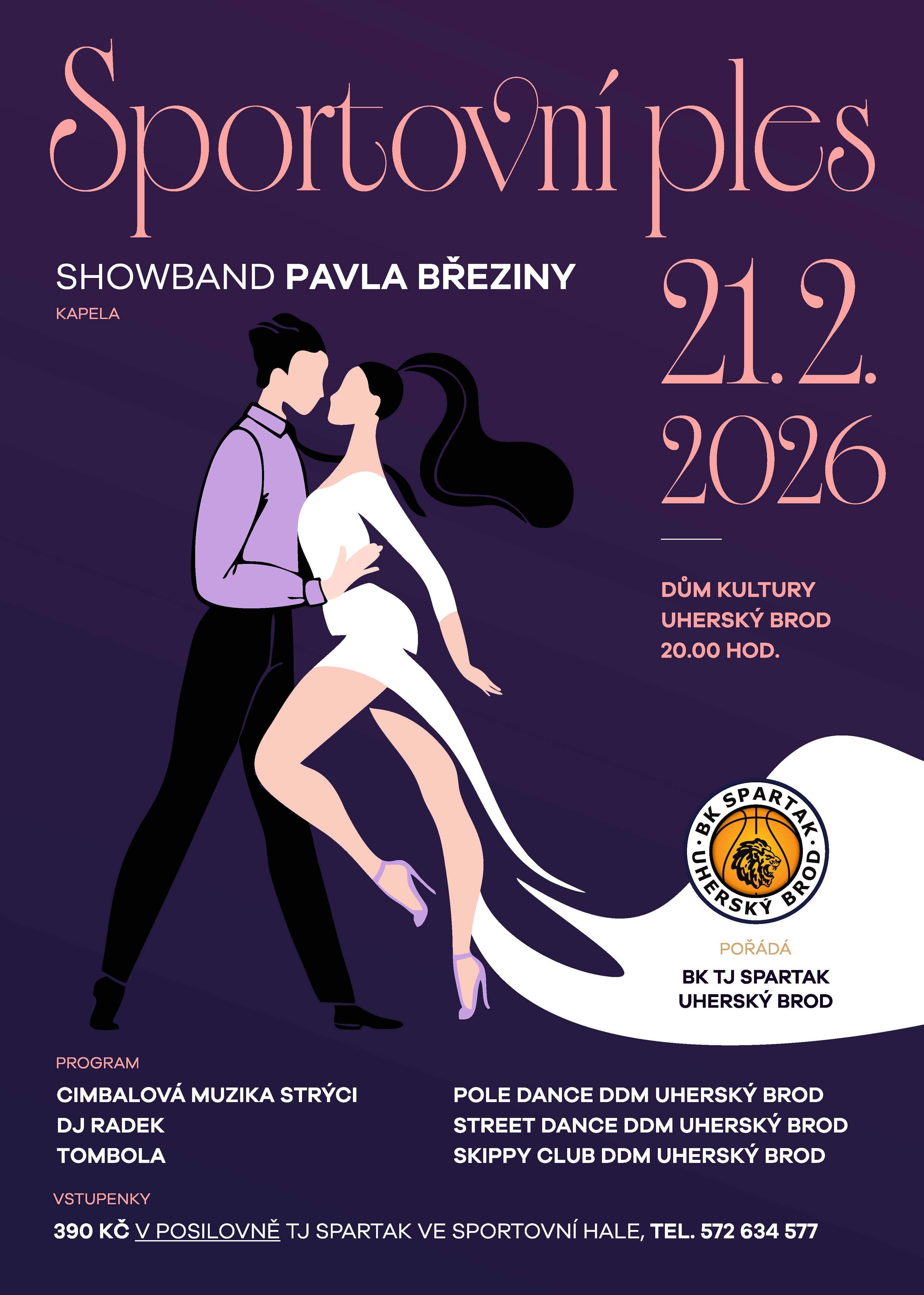 Basketbalový klub TJ Spartak Uherský Brod vás srdečně zve na tradiční SPORTOVNÍ PLES. Vstupenky zakoupíte v posolovně TJ Spartak ve sportovní hale.